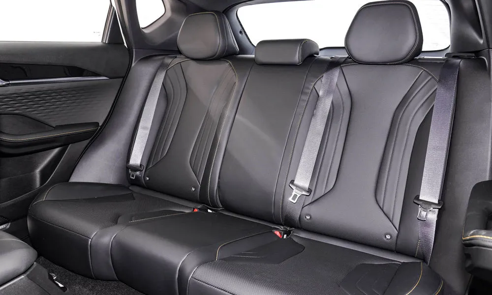 | Отделка интерьера и сидений экокожей чёрного цвета с контрастной строчкой красного цвета |